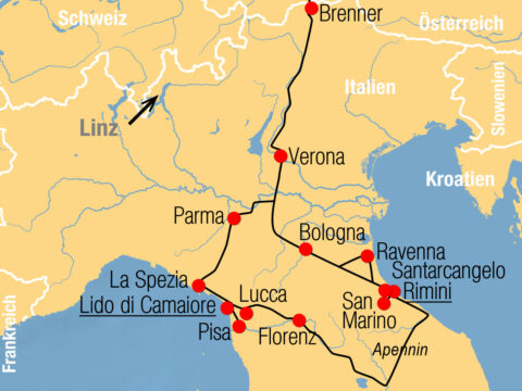 Von der Costa della Versilia im Westen bis zur Riviera Romagnola im Osten spannt sich der Bogen bei dieser Entdeckungsreise zu den…