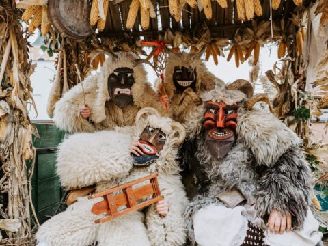 Die Vertreibung des Winters und die Ankunft des Frühlings wird bei einem lebendigen Volksfest mit furchterregenden Masken, Gewändern aus Schaffell und Musik…